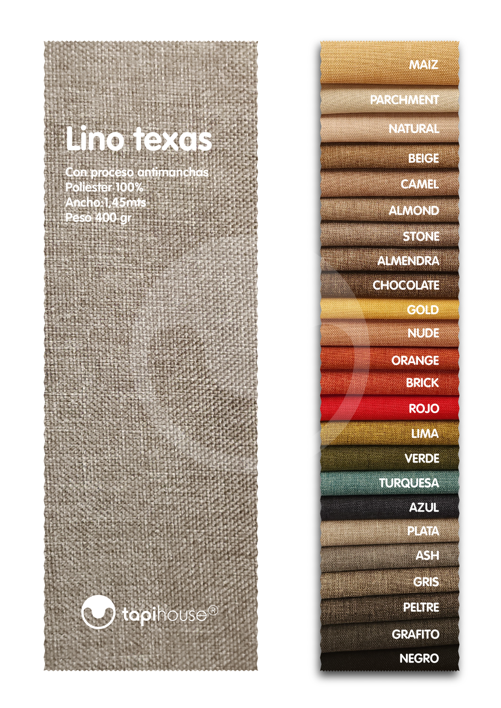 Linos disponibles: Mood, Aspen, Nirvana, Linen, Texas, Spazio, Boss y Maui.